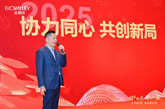 年會伊始,云南生物谷藥業(yè)股份有限公司總經(jīng)理胡建輝先生發(fā)表講話。他深情回首2024發(fā)展歷程,并代表公司感謝所有員工的辛勤付出。講話中,他重點分析了公司當(dāng)前面臨的問題及內(nèi)外部形勢,并回顧過去一年的成績。他強(qiáng)調(diào),2025年,生物谷藥業(yè)將持續(xù)堅持創(chuàng)新驅(qū)動,努力拓展市場,為實現(xiàn)更高質(zhì)量發(fā)展而不懈奮斗。